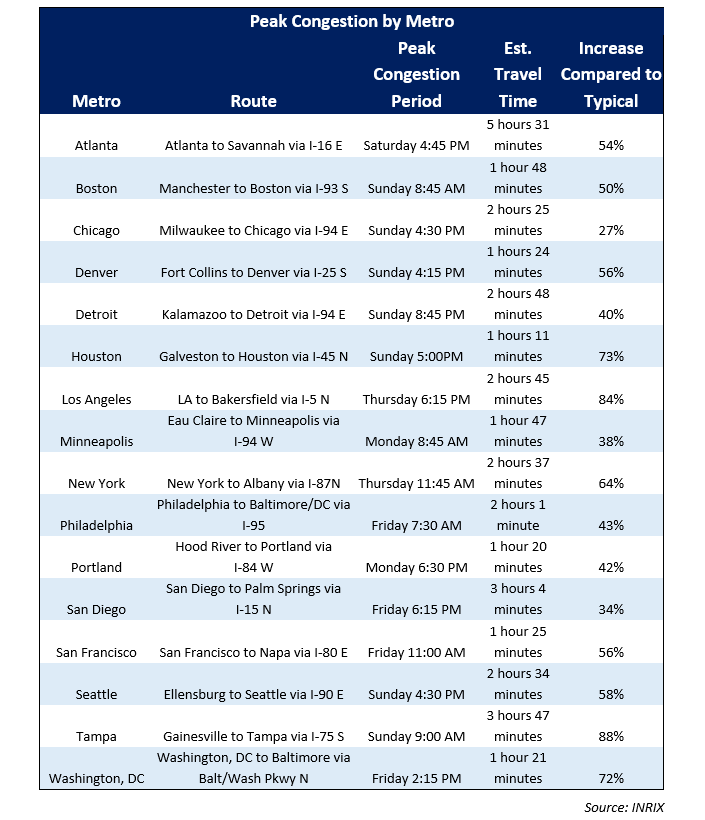 “Travel times are expected to be up to 90% longer than normal. Travelers should stay up to date on traffic apps, 511 services, and local news stations to avoid sitting in traffic longer than necessary,” said Bob Pishue, transportation analyst at INRIX.